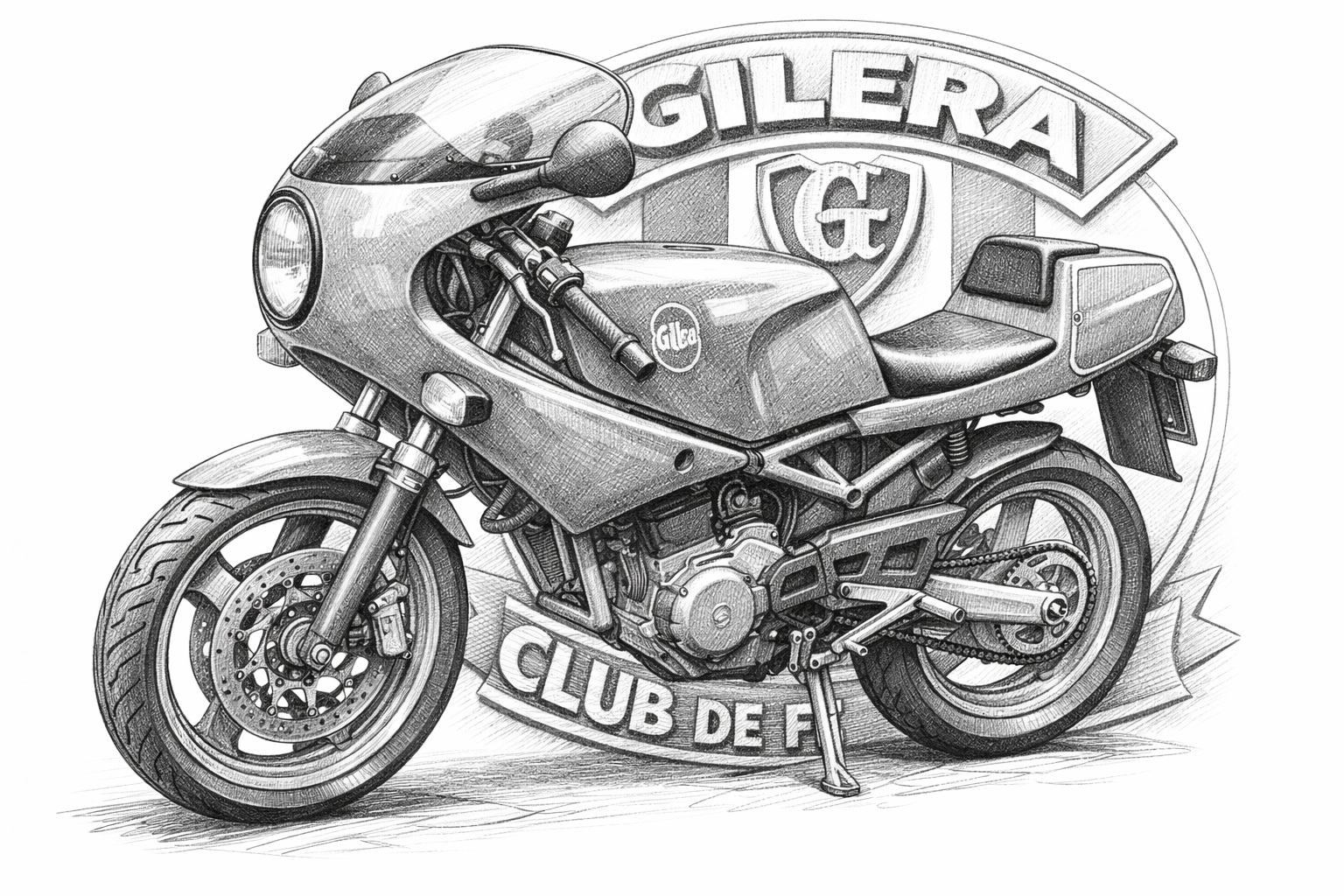 J'avais proposé un truc plus simple et plus chic, Teeshirt Rouge, logo en blanc (les deux cercle) avec Gilera dessous dans le graphisme années 90 en petit sur le cœur et en gros dans le dos